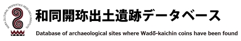 この「和同開珎出土遺跡データベース」は、2001~2007年度に実施した科学研究費補助金、基盤研究(B)『富本銭と和同開珎の系譜をめぐる比較研究』(研究代表者:松村恵司)で実施した和同開珎出土遺跡の全国集成作業に基づくものです。その成果は、2007・2008年刊行の『和同開珎をめぐる諸問題(一)』『同(二)』(松村恵司・栄原永遠男編)で公開しましたが、この度それを電子化し、奈良文化財研究所のホームページ上で広く一般に公開するものです。<br/> <br/> データベース化に向けた作業は、2015年度の日本学術振興会の科学研究費補助金、基盤研究(B)『和同開珎の生産と流通をめぐる総合的研究』(研究代表者:松村恵司)で実施しました。<br/> <br/> 2007・2008年に実施した「和同開珎全国出土集成」は、出土銭貨研究会北陸ブロック編『畿内・七道からみた古代銭貨』(出土銭貨研究会、2000年)などを参考に、各地域の研究協力者に資料の追加と詳細情報の補足を依頼して完成させたものです。<br/> <br/> 研究協力者は、北海道・東北地方―八木光則、関東地方―深澤靖幸、北陸地方―芝田悟、中部地方(山梨・岐阜・長野)―西山克己、東海地方(愛知・静岡)―岩名建太郞、三重県―新名強、滋賀県―坂田孝彦、京都府―森島康雄、大阪府―尾上実、兵庫県―渡辺昇、奈良県―田中大介、和歌山県―北野隆亮、中国地方―青島啓、四国地方―柴田圭子、九州地方―櫻木晋一の諸氏で、改めてここに謝意を表する次第です。<br/> <br/> 集成した和同開珎は総数6362点(内銀銭51点)で、出土遺跡は784遺跡です。<br/>